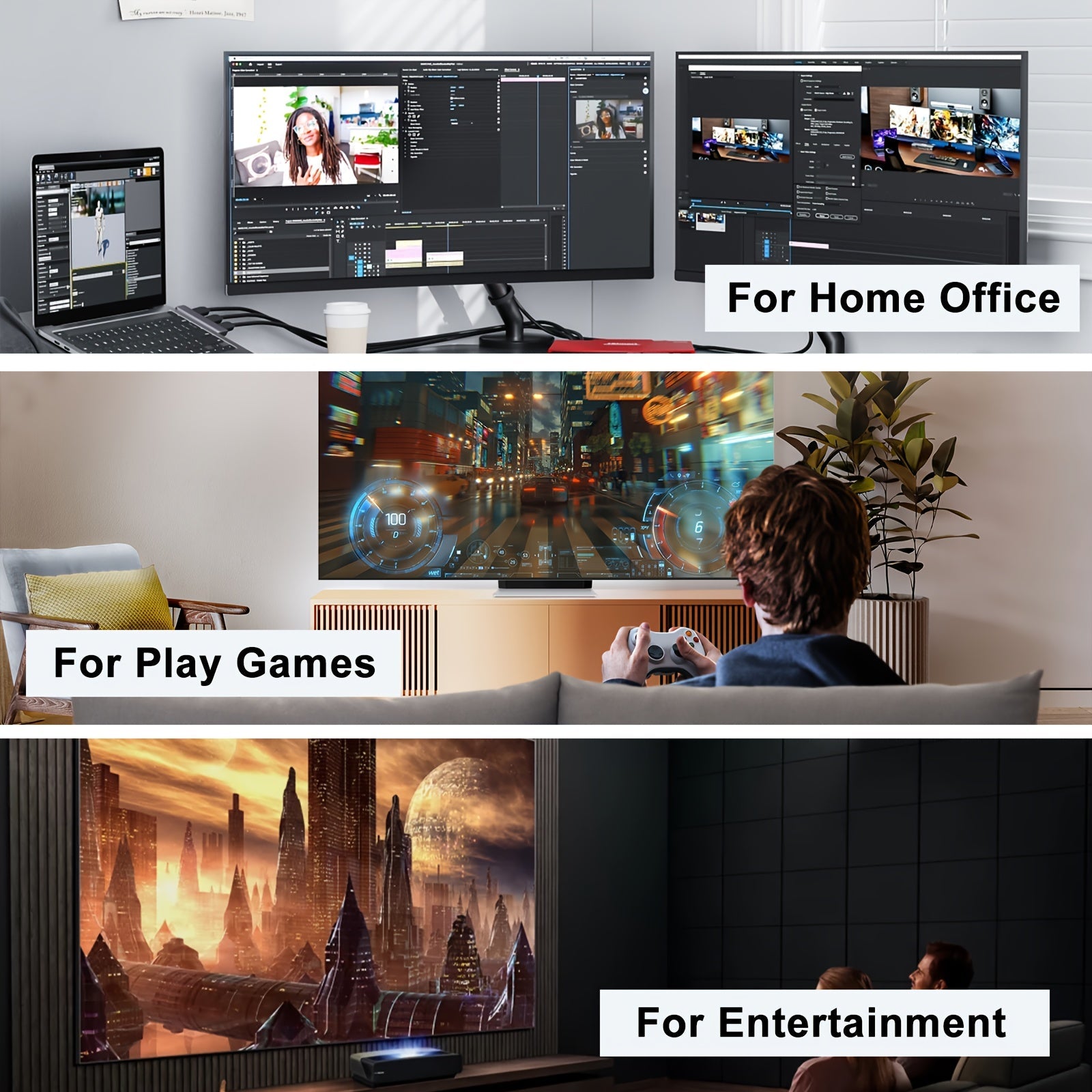 - Versatile Connectivity: Connect effortlessly to a wide range of devices including monitors, HDTVs, laptops, PlayStation, Xbox One, and Fire TV.